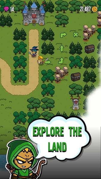 2、招募英雄,升级他们的能力,探索土地并选择与之交战的敌人。完成所有任务,击败邪恶强大的骷髅王;