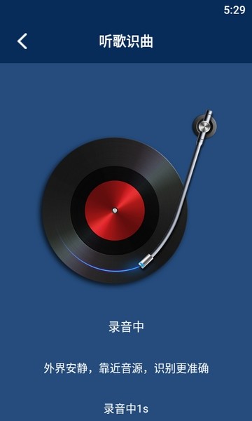 听歌识曲达人是一款很实用的听歌识曲软件,它的识别是非常准确的,只需将手机靠近音源然后开始识别即可,只需一会儿便能得到结果了,使用起来非常简单高效,让你不用再错过喜欢的音乐。此外软件还提供了猜歌的玩法,并且还分成了多个类别,用户可以在这里听歌曲的部分内容然后去猜出这首歌的名字,而其中还包含了儿歌版块。
