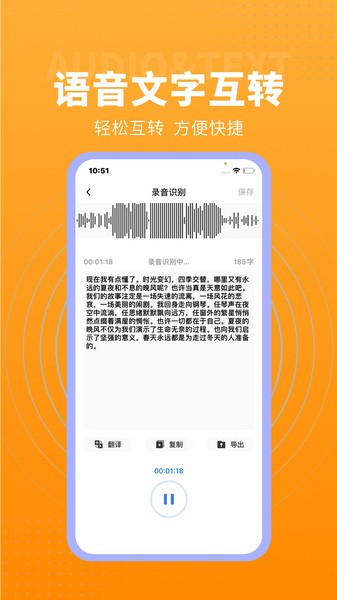 同时可以用随声鹿把录音一键转文字、文字一键转语音,并有实时录音转文字功能,让您释放双手,事半功倍。