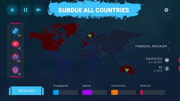 政权模拟器破解版是一款非常有趣的势力构建模拟游戏。在这款游戏中玩家可以运用各种策略组合来构建属于自己的权力集团。统治全世界的征途在这里开始,指挥自己的军队对其他的政权势力发起进攻,合纵连横,瓦解强大的势力,不断地蚕食。玩家可以随时调整自己的策略以应对变化的局势,巩固自己的优势。本页面提供内购破解版。