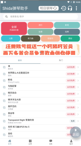 Shida钢琴助手App的界面设计简洁明了,操作非常顺畅,即便是新手也能快速上手。其次,曲库非常丰富,无论是热门歌曲还是冷门曲目,都能找到。特别是在游戏中使用时,支持变速、变调、选音轨等高级功能,使得演奏更加多样化和有趣。此外,软件的免费试用功能非常贴心,让玩家可以先体验再决定是否购买。唯一需要注意的是,部分用户可能会遇到一些兼容性问题,但官方提供的解决方案也非常详细有效。