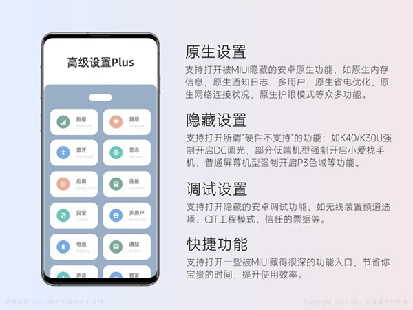 隐启设置APP作为一款安卓系统的增强型辅助工具,不仅支持开启隐藏的系统功能,还能实现对设备的精细化管理。它利用Android提供的隐启设置接口,使用户能够快速访问诸如miui系统的隐藏设置,以及开发者调试模式下的特定选项。借助这一软件,即使是复杂的系统配置也能变得简单直观,无论是专业人士还是普通用户都可以轻松掌握。更重要的是,隐启设置APP完全免费,且无需额外授权即可实现多项高级功能,如快速切换到指定应用界面、一键发布微博或微信动态等,极大地提升了日常使用效率。