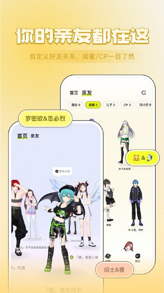 在ZRole,可以结识各类好友,创建属于你们的自定义亲友关系;