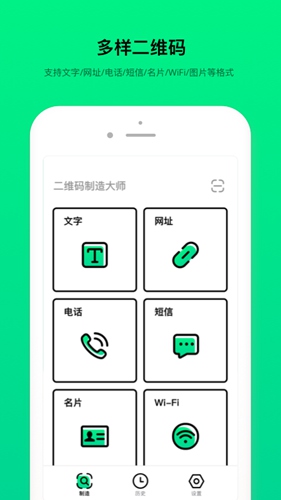 二维码一键生成,支持文字、网址、电话、短信、名片、WiFi、图片等多种二维码生成格式,简单操作,轻松便捷;