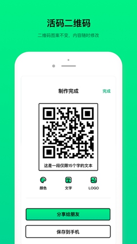 这款二维码制造大师安卓版真的很好用!首先,它支持多种类型的二维码生成,比如文字、网址、电话、名片等等,满足各种场景需求。最让我喜欢的是它的“活码”功能,二维码图案不变,但内容可以随时更新,这对于需要频繁修改信息的人来说特别方便。