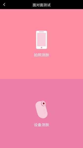 应用有多种测肤方式,包括拍照测肤、设备测肤、全脸测肤等;