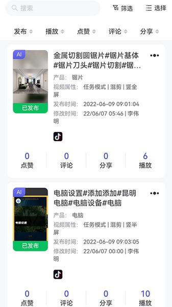 查询自己已经发布的所有视频,方便对视频进行管理
