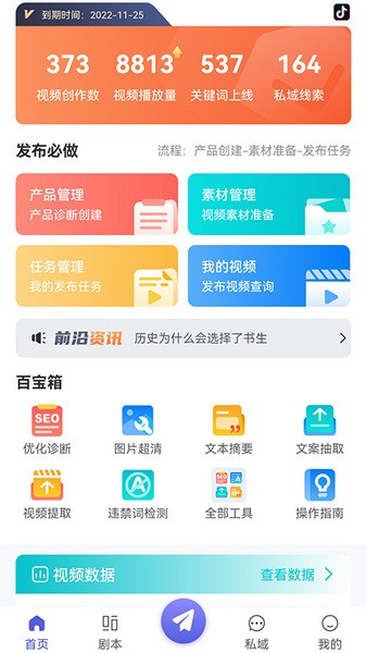 慧抖销是一款非常实用的营销工具软件,主要针对短视频平台的内容管理和推广。它提供了多种功能,包括产品管理、素材管理、视频查询、违禁词检测和文案抽取,帮助用户更高效地运营自己的账号。