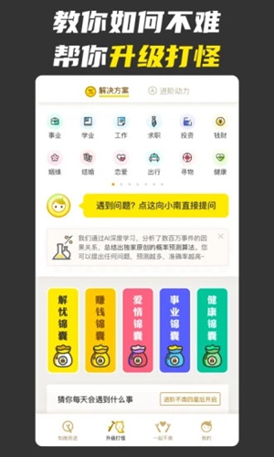 “不南”APP是一款专注于解决生活难题和帮助用户养成良好习惯的神器。无论是工作、学业还是感情问题,它都能提供实用的解决方案。界面设计简洁清爽,功能强大,还支持制定各种日常习惯目标,比如早起、刷牙、喝水等,完成任务还能升级并获得福利惊喜。