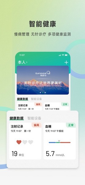 针对糖尿病无针注射患者需求,配合QLINK硬件产品,提供实时记录注射信息,分析注射情况。支持Android系统6.0及以上