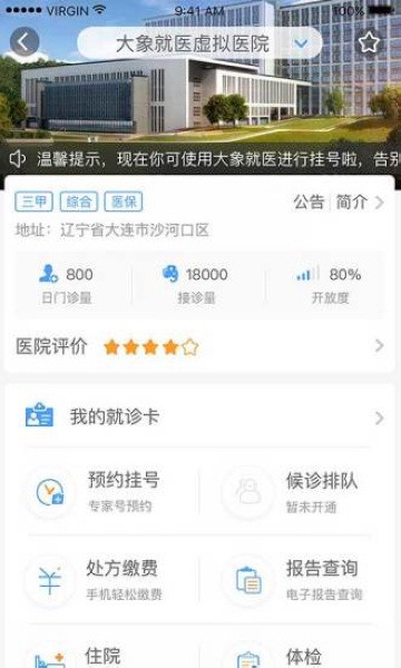 大象就医app功能全线覆盖就诊各环节,除看诊和检查外,导诊、挂号、候诊、缴费、查报告、缴纳住院费、建立健康档案等均可通过“大象就医”完成
