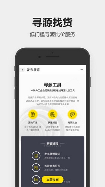 1688工业品是阿里巴巴旗下专注于工业品寻源采购的手机应用。依托1688平台,面向工业品买家,力求打造全、专、快、好的工业品采购体验。