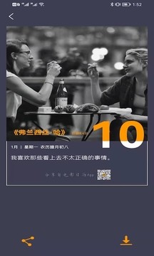 电影和生活越来越紧密了,逢年过节看电影成了大家的必选项目。最近发现了一个叫“电影日历”的软件,感觉挺有意思的。这个软件和其他日历不太一样,每天都会推送电影海报,用户可以下载或者分享给朋友,感觉特别有艺术感。