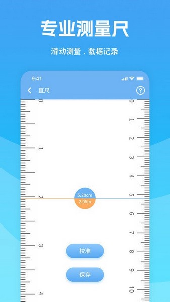 1.以手机的边作为尺子进行测量物体,拖动滑动记录 物体的长度,点击按钮将保存该界面测量记录