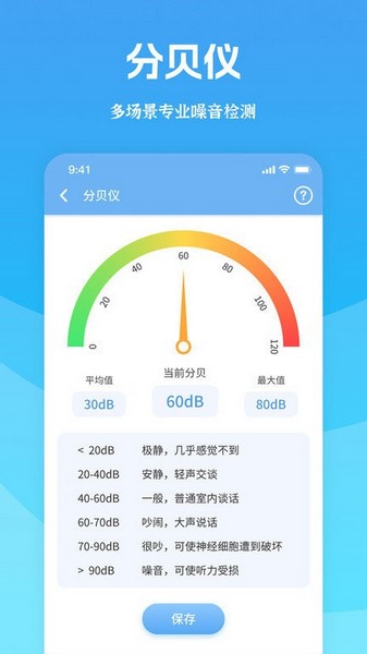 增加测量记录图片导出pdf,分贝语音提醒,实景相机定位分贝功能,优化用户体验,修复一些已知问题。