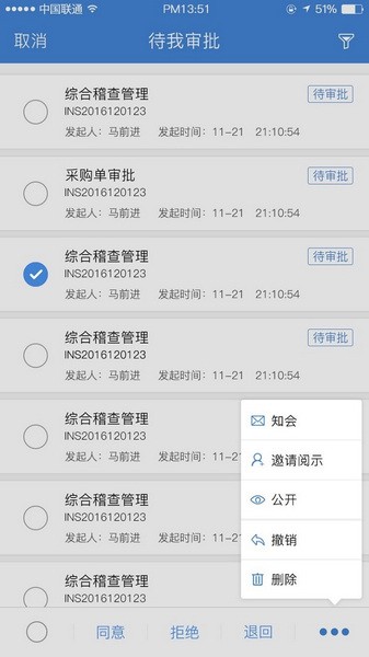 1)流程审批:提供工作流在手机app中的审批功能。