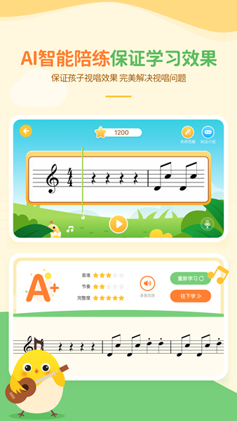 2、智能识别,实时反馈,随时随地进行视唱练习;