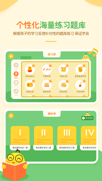 音乐壳APP是一款专注于音乐教育的手机软件,这里有专业的乐理、视唱和练耳三个部分的知识和习题,主要针对儿童实行互动式的教育方法,让孩子对音乐更加感兴趣,并主动去接受音乐方面的知识。软件中的界面以及很多内容都是卡通风格的,孩子们能在这里看到有趣的动画还能通过游戏的方式进行多种音乐练习,学习过程非常欢快同时也十分效率。