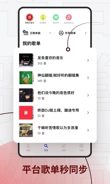 3、平台歌单秒同步,轻松定制专属歌单,能够让音乐更广泛;