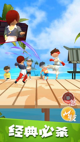 街机之王是一款格斗游戏,延续了街机的风格,玩家可以在这里体验到超刺激的格斗乐趣。其中的人物都是3D Q版的风格,看起来很可爱,但是他们的招式都是非常厉害的,而且还可以将多种招式组合在一起形成连招,让对手无法反击。此外还有怒气系统,可以随着战斗积累怒气,满了之后就可以释放出超强力的技能,甚至能够扭转局势。