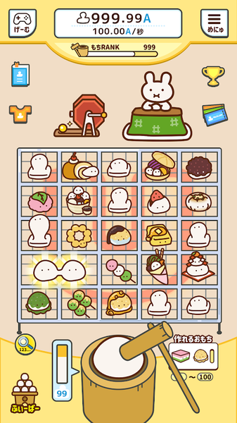 3、为了筛选好吃的年糕利用你的手指捏捏年糕们,把相同的年糕叠在一起开发新的年糕吧!各种可爱年糕等你摸索!