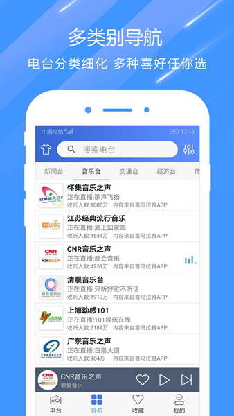 涵盖音乐,新闻,经济,交通等各种分类满足个性需求