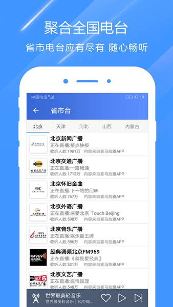 3、聚合了全国的电台资源,平台上聚合了全国各地的电台资源,还划分不同省份;