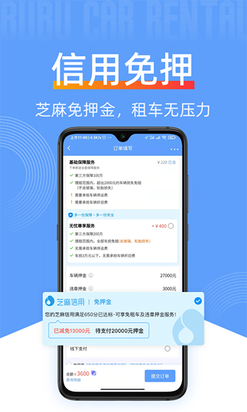 【信用免押】芝麻免押金,租车无压力