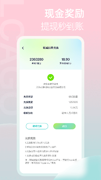 【低碳收益】青碳行自上线以来先后将地铁、公交、步行、骑行、新能源汽车纳入平台,将用户地铁、公交、骑行、新能源汽车等低碳出行行为核算为碳减排量,通过隐私算法保护用户隐私和数据安全,以联盟链技术全流程存证碳减排量,通过智能合约设定合规条件将碳减排量兑换成数字人民币到用户数字人民币钱包中,实时提现,实现公众绿色低碳出行可量、可视和可得。
