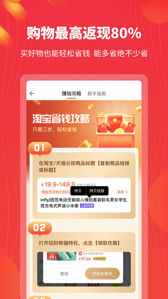 2、一键复制,精准找券,大额优惠亮瞎你的眼睛,特权、优惠、折扣福利多多,击爆你的想象底线。