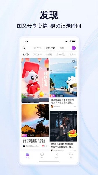2、进入后,点击发现,这里有着很多其他用户发布的有趣视频;