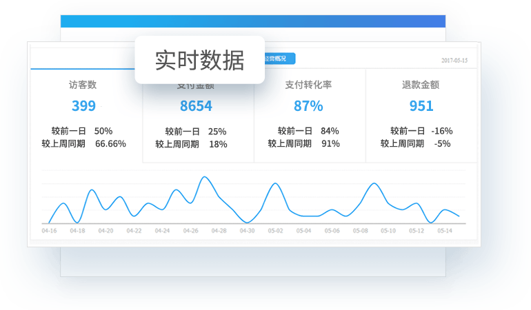 提供店铺全面的数据面板,实时更新店铺交易走势,店铺运营一目了然