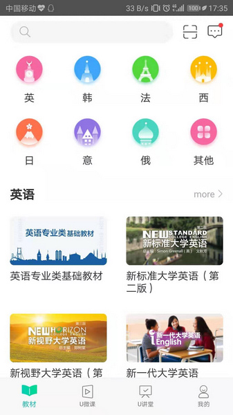 操作方面,app把资源按语种分类,用户可以根据需求自由选择。激活教材需要输入验证码,还挺方便的。另外,新增了很多特色功能,比如U微课和U讲堂,还有分享和学习时长报告,感觉对坚持学习有帮助。