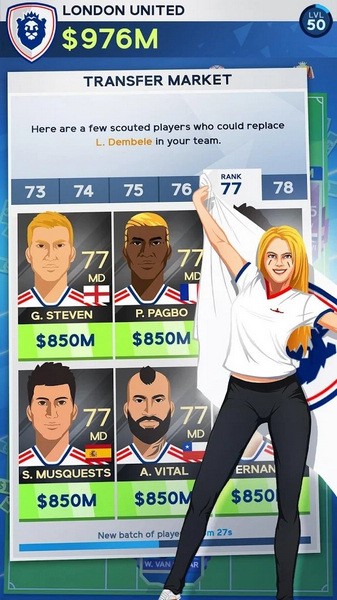▪ 在转会市场上招募顶级球员,打造你的梦之队(进攻球员、中场球员、防守球员……)