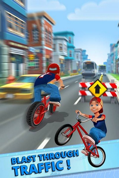 自行车赛车爆炸自行车是一款拥有挑战性玩法的趣味自行车跑酷游戏。在这款游戏中玩家可以驾驶自行车在道路上做出各种高难度的技巧,在城市的各个角落自由自在地前进,同时还可以借助各种道具来帮助自己快速跃进,还能够获得更高的分数。当玩家的等级提高时可以解锁更多的技能,升级道具的等级来获得更多的效果。