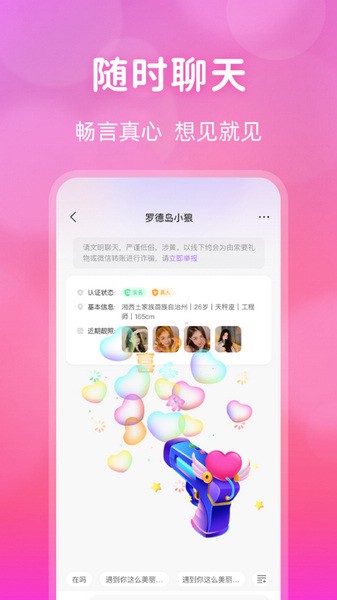 我挺喜欢这种同城交友的方式,毕竟认识身边的人感觉更靠谱一些。而且app里的功能也很完善,支持视频通话、真人认证,还能随时查看附近的人资料。不过还是要提醒大家,在使用这类软件时一定要注意保护个人信息和隐私安全,避免遇到骗子。
