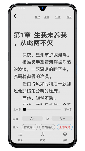 4.夜间护眼模式,调节亮度,放缩字体,健康阅读保护您的双眼。