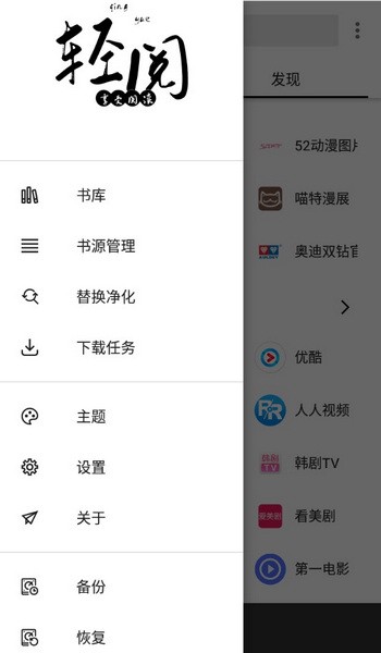 2.在出现的侧边栏中找到【书源管理】一项并点击。