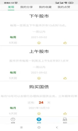 点击软件首页中部的【添加+】按钮,选择【新建】,修改标题,提醒时间周期,提醒方式,其中周期有以下几种:及时、每日、每周、每月、每年、每年农历,提醒方式包括:状态栏提醒,闹钟提醒,震动提醒。点击【保存】回到首页后再任务列表中可以看到您添加的提醒。