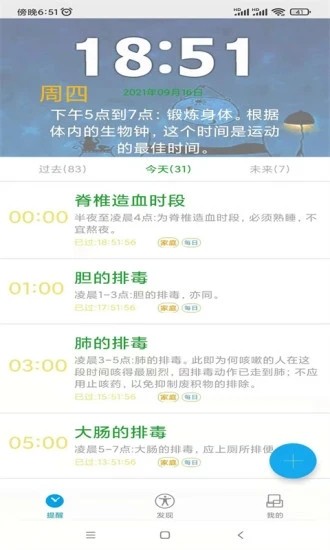 早睡早起身体好,这是大家都知道的一个生活常识,还有哪些科学的作息方案对我们的健康有益呢?今天小编推荐的这款科学作息时间表app可以解答你的疑惑。随话说得好,身体是革命的本钱,不管是工作还是学习都要以自己的身体状况为主,身体是革命的本钱,唯有把身体照顾的好好的,才能努力学习工作,科学作息时间表app是一款以人体脏腑器官的运行规律为基础设计的作息时间表,为用户合理安排作息时间。