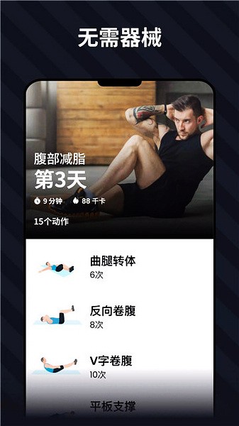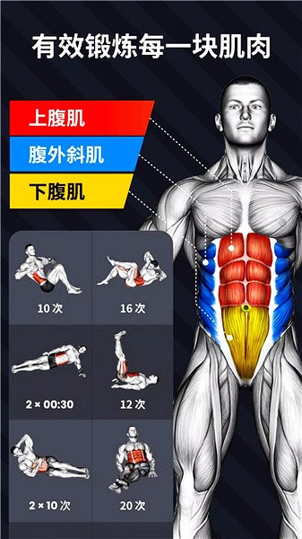 确立了明确的目标,效果就会早日呈现!30天内练出六块腹肌提供有系统而科学的30天锻炼计划,帮助你确立锻炼目标。所有的锻炼都是免费的,可以帮助你高效燃烧腹部脂肪,锻炼腹部肌肉。锻炼难度逐渐增强,帮助你养成每日锻炼身体的好习惯。