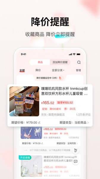 降价提醒,收藏后达到期望价位自动提醒;