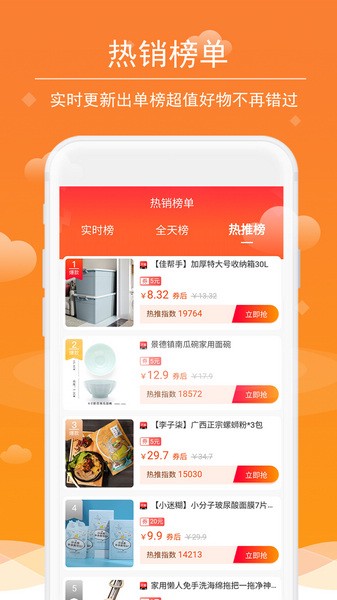 3、 在热销榜单页面,实时查看热销的商品列表,在线立即抢购