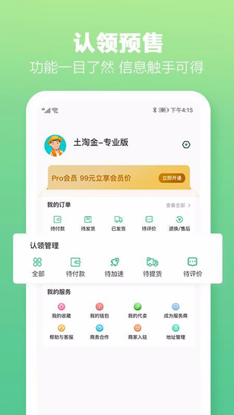 土淘金APP是一个网购农副产品的神器,里面啥都有,海鲜、菌菇、水果、粮油啥的全齐活儿。最牛的是还能玩农场种植,种出来的东西还能免费收,简直太有趣了!软件功能也挺强大,想买啥直接搜,看好的东西还能转发给朋友,甚至能写评价吐槽商家,感觉自己像个美食博主呢。还有代卖集市,闲的时候也能赚点小钱。