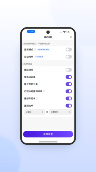 功能方面,应用操作简单便捷,包括实时更新的订单信息、一键搜索等功能,让司机可以快速抢单。平台还提供丰富的权益,比如免佣奖励,帮助司机每天赚更多钱。此外,所有司机都经过认证,确保旅途安全可靠。