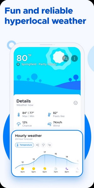 使用最少的和有用的天气控件,快速检查实时天气状况和接下来5小时的天气预报。每小时图表将帮助您轻松查看一段时间内的预测差异。