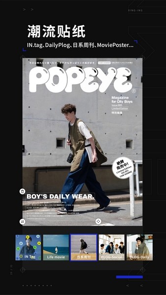 型影app不仅提供了多种主题的个性风格滤镜,还有潮流系贴纸,每周都有新内容更新,保持时尚和个性。它还具备超过15+种主题型酷光影特效,每月持续更新,确保你的照片和视频充满创意和独特性。无论你是想表现出高级感,还是展现个性风格,型影app都能满足你的需要。它是记录潮流生活的利器,为你的照片和视频增色不少。