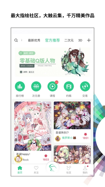 我最喜欢的是它的社区功能,可以和其他画友交流学习,还能参加各种绘画活动,氛围很好。特别是“次元册”这个功能,可以把作品整理成绘本或者图文混排,成就感爆棚!还有约稿和交易功能,感觉自己也能靠画画赚钱了,这也太酷了吧!
