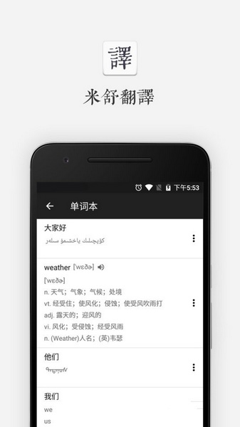 米舒翻译,精致的少数民族语言翻译app,精心打造的定制主题、智能的语音识别及高效的在线翻译引擎。