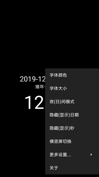 1、下载简黑时钟app最新版安装后,启动应用即可进入软件,点击时间位置即可弹出菜单